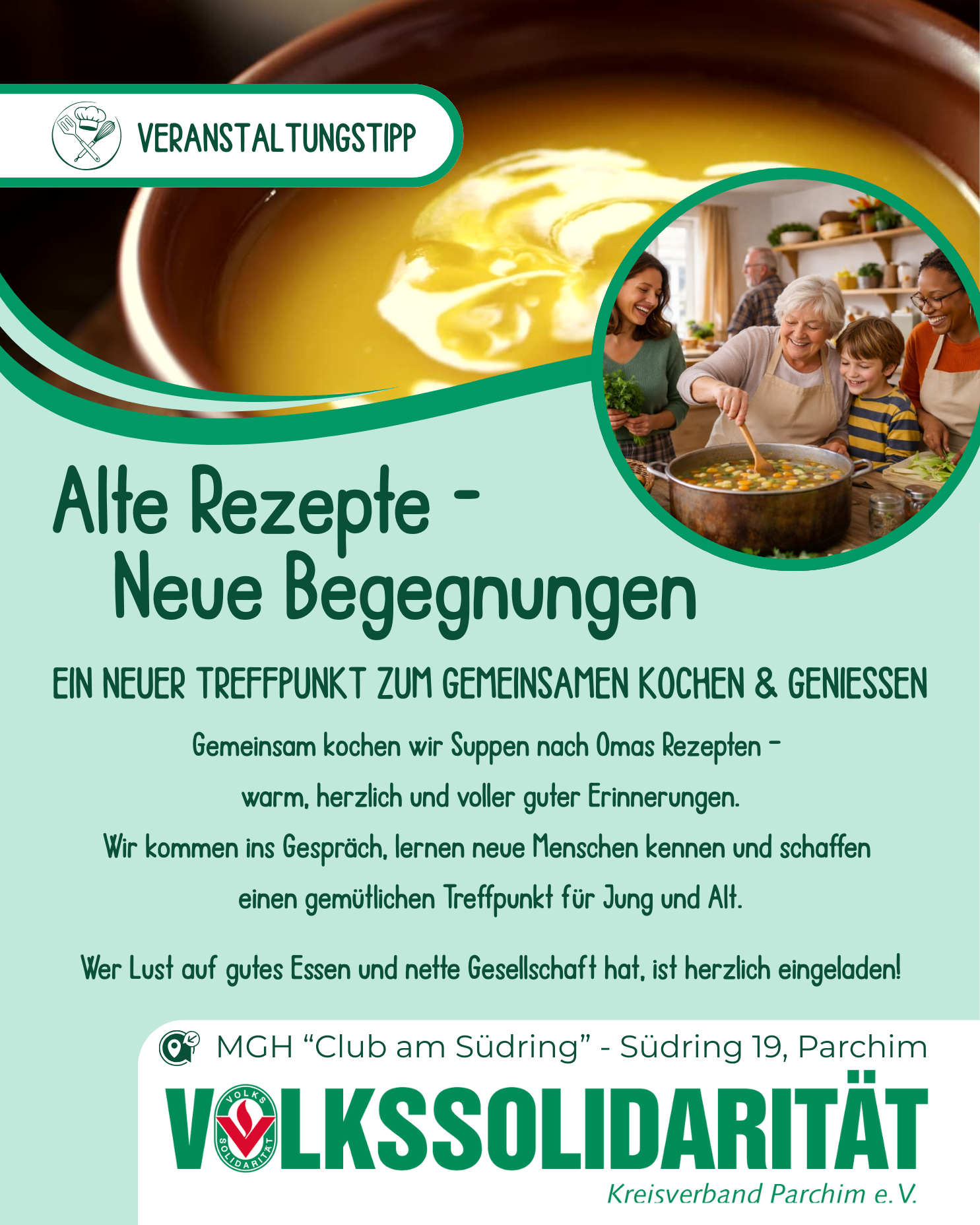 Gemeinsam kochen wir Suppen nach traditionellen Rezepten aus Omas Zeiten – warm, herzlich und voller guter Erinnerungen.