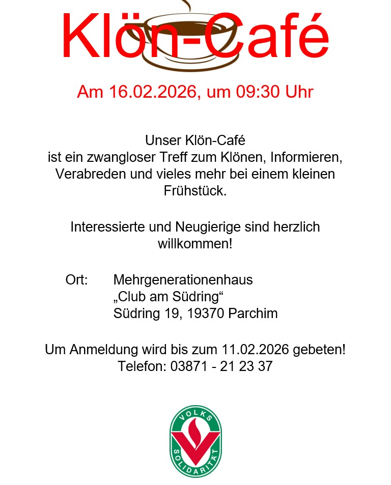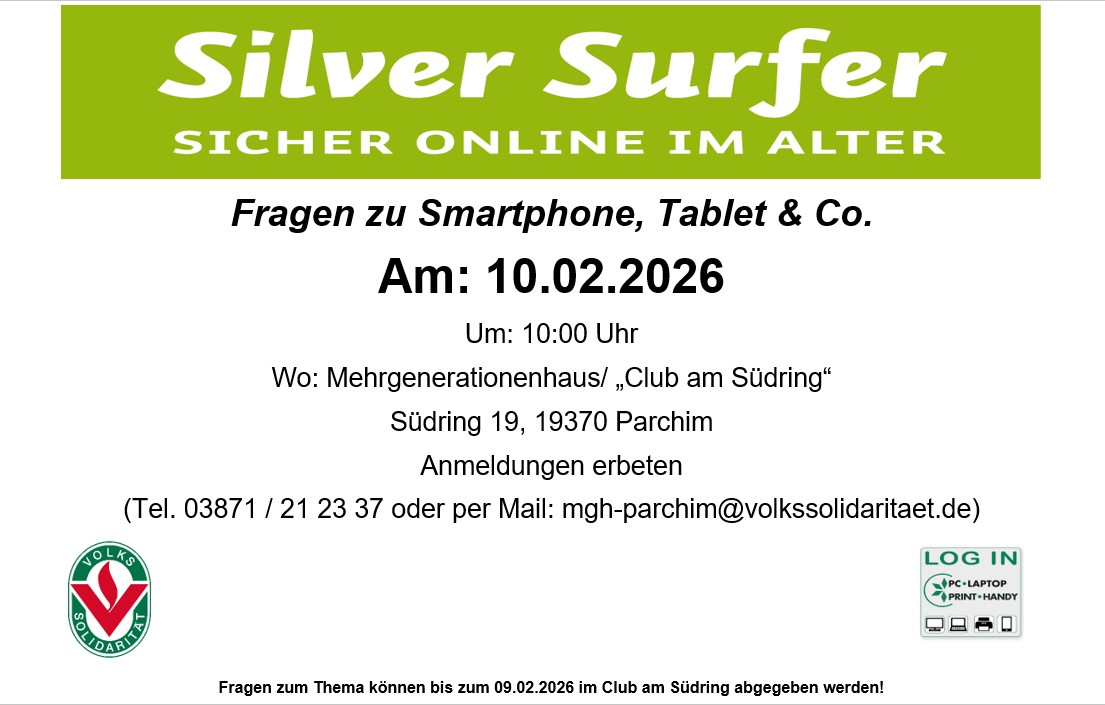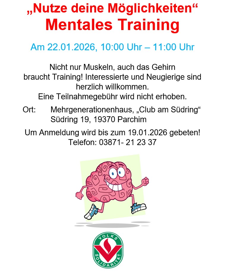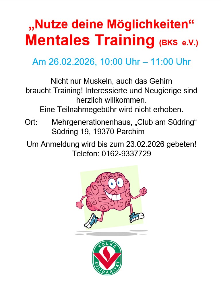 Los geht´s ab dem 17. Februar 2026 um 10:30 Uhr im Mehrgenerationen-haus "Club am Südring" in Parchim. Um besser planen zu können, bitten wir um Anmeldung bis zum 10.02.2026.