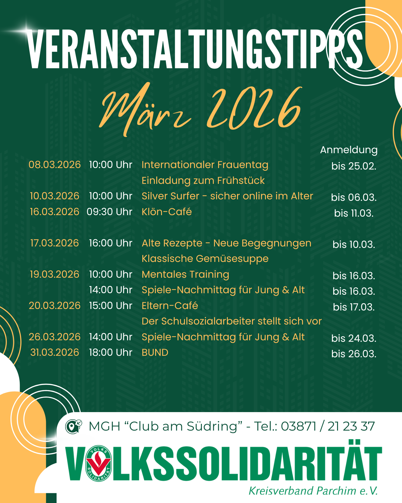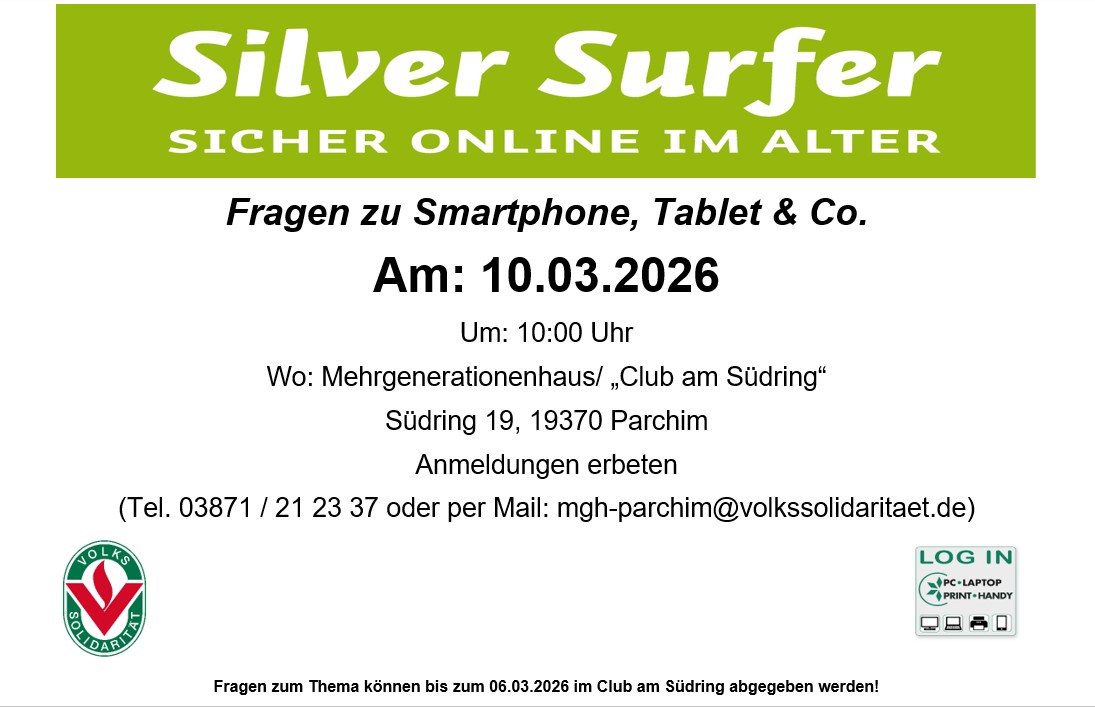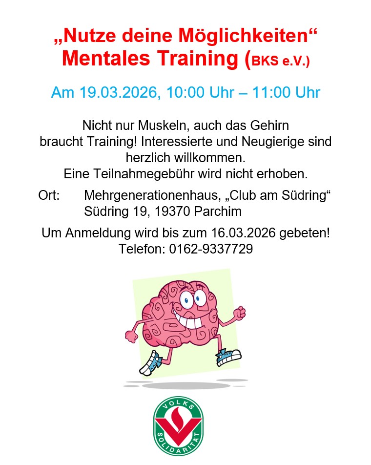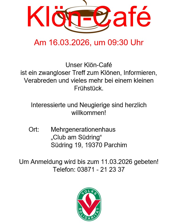 Los geht´s ab dem 17. Februar 2026 um 10:30 Uhr im Mehrgenerationen-haus "Club am Südring" in Parchim. Um besser planen zu können, bitten wir um Anmeldung bis zum 10.02.2026.